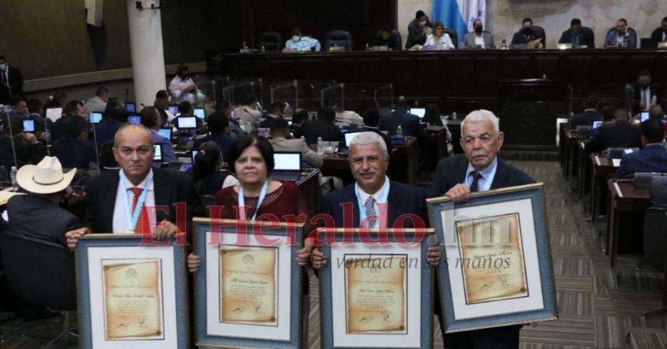 TEGUCIGALPA, HONDURAS.- El Congreso Nacional galardonó con medalla de honor al mérito y pergamino especial de reconocimiento a cuatro empleados que han laborado por 40 años en este Poder del Estado.Entre los unísonos aplausos de los congresistas se premió en la sesión legislativa a Beatriz Rivera, secretaria adjunta; Norman Arévalo, asistente de la junta directiva; Mariano Zepeda, asistente de la prensa; y Óscar López, encargado de sonido.