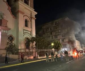 La confrontación dejó a nueve policías heridos, daños materiales y a la propiedad privada, llegando a incendiar una motocicleta en medio del conflicto.