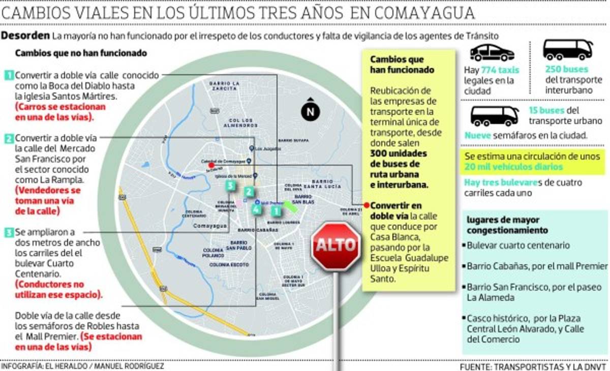 Cabe destacar que en Comayagua se han realizado varios cambios viales en las calles pero no se respetan.