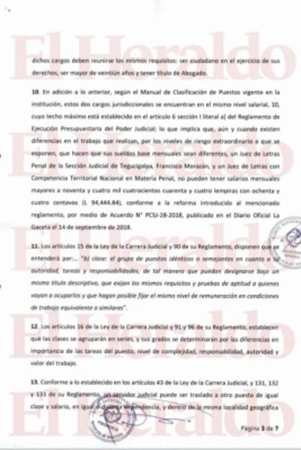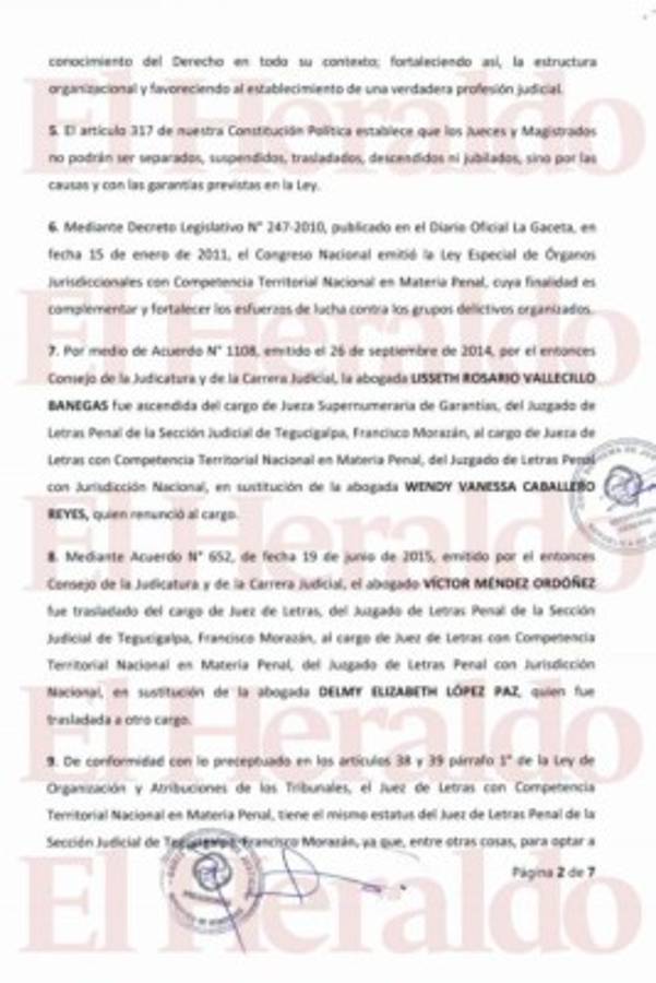 De acuerdo a la ley, el sustituto natural por razón de la competencia de esos juzgados es el juez Carlos Irías León, asignado a San Pedro Sula, por lo que se estará trasladando a Tegucigalpa para evacuar esta y otras audiencias.
