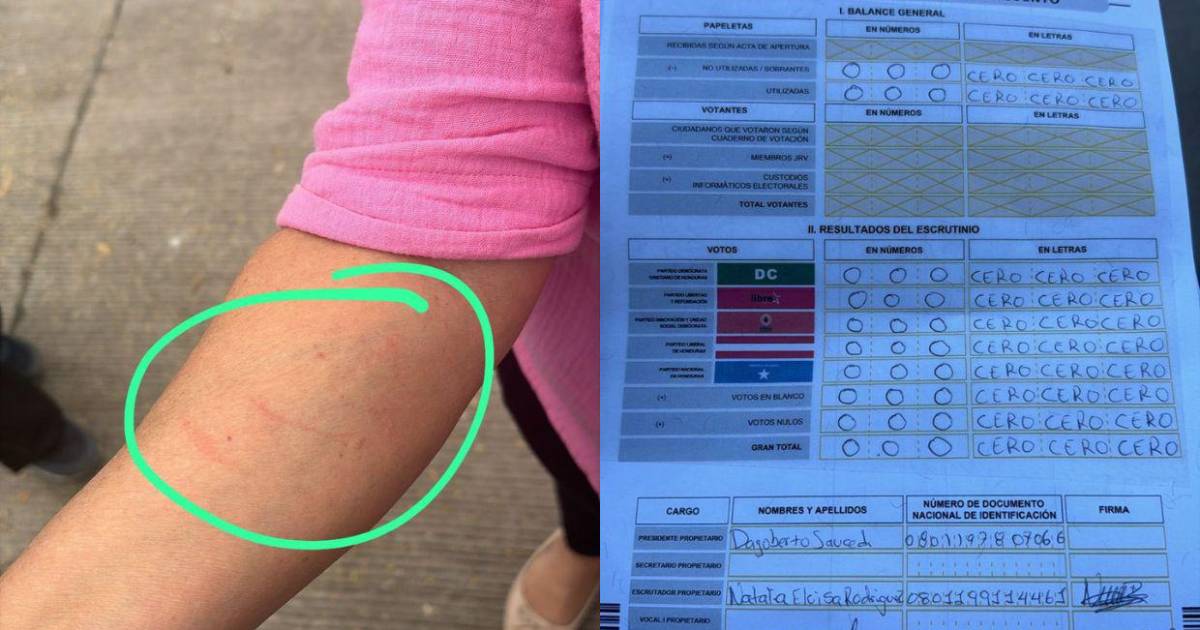 Merary Díaz compartió fotografías en las que una mujer, presunta integrante de una de las Juntas Especiales de Verificación y Recuento (JEVR) que realizan el escrutinio especial, mostraba algunas lesiones en la piel, supuestamente, tras ser agredida por integrantes de partidos contrarios.