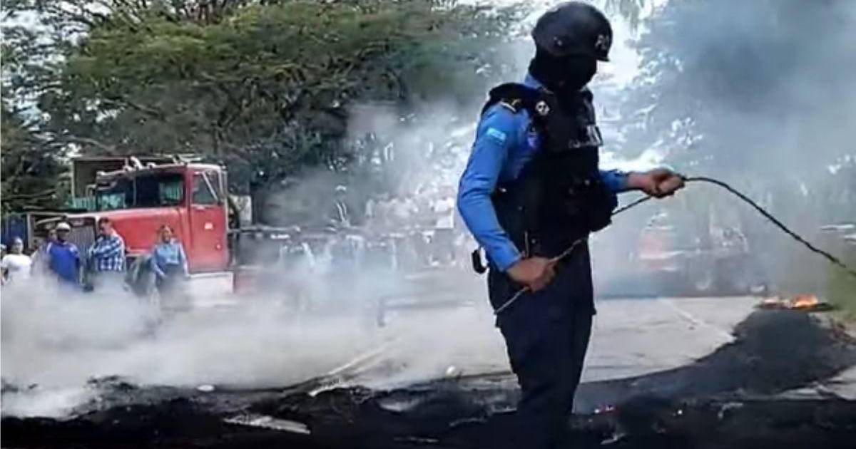 Los protestantes colocaron una rastra atravesada en ambos carriles para impedir el paso vehicular; sin embargo, la Policía Nacional logró despejar la vía de forma pacífica.