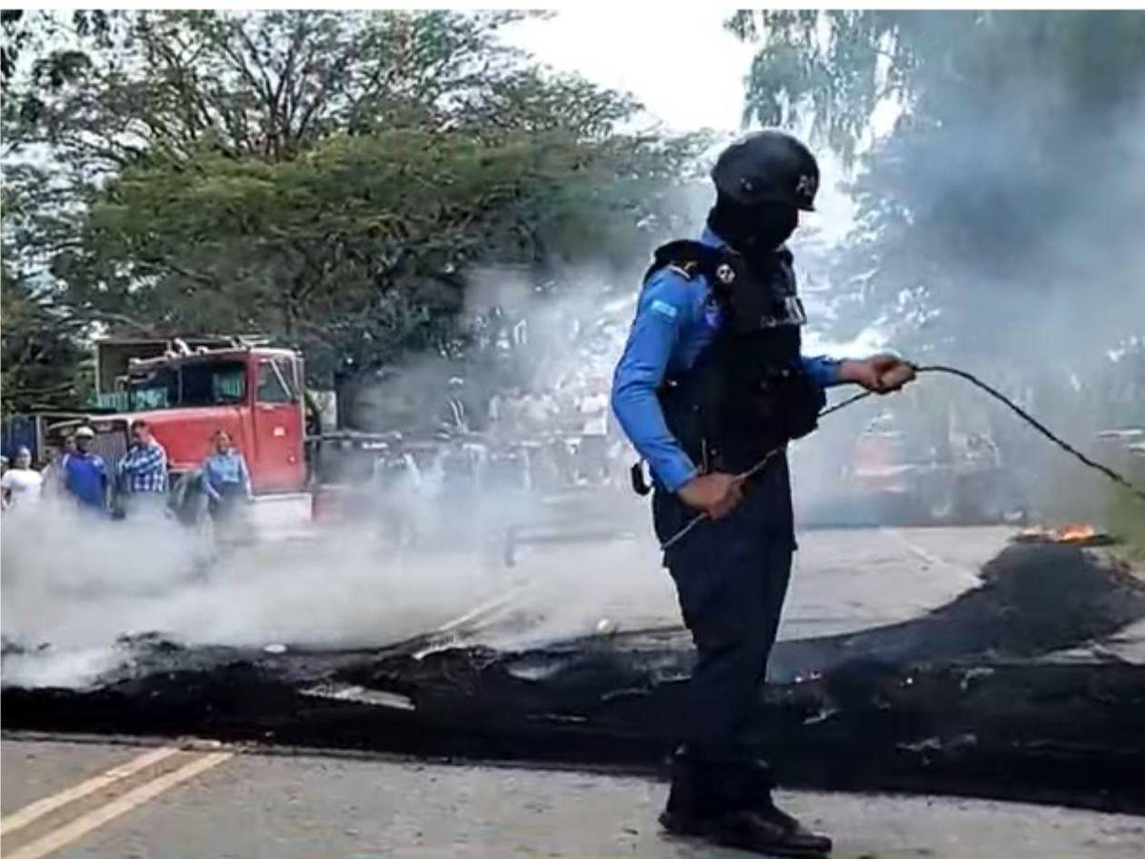 Al sector de Río Dulce, Talanga, llegó la Policía Nacional alrededor de las 2:50 de la tarde, lista para desalojar a los manifestantes que llevaban más de dos horas protestando.