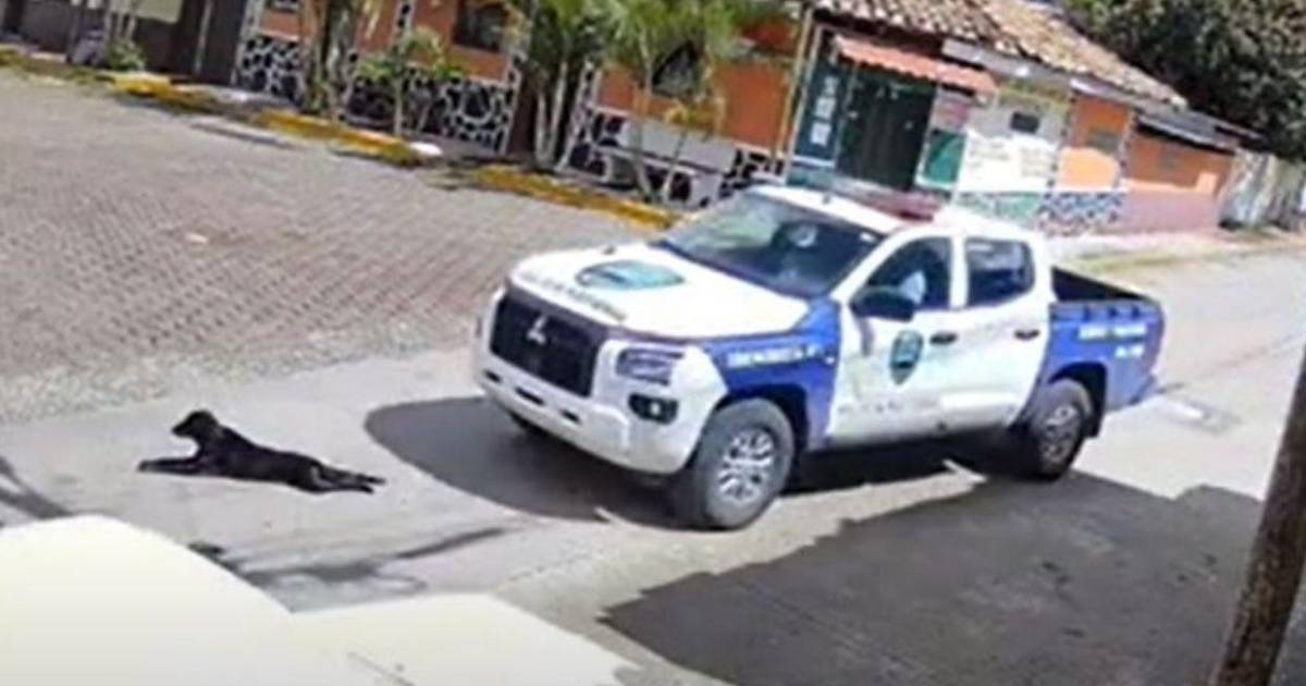 Imágenes que fueron captadas por cámaras de seguridad de un comercio de la zona, muestran el momento que los agentes -que se conducían en la patrulla PN-1106- pasan por encima del perro, que estaba acostado en la calle.