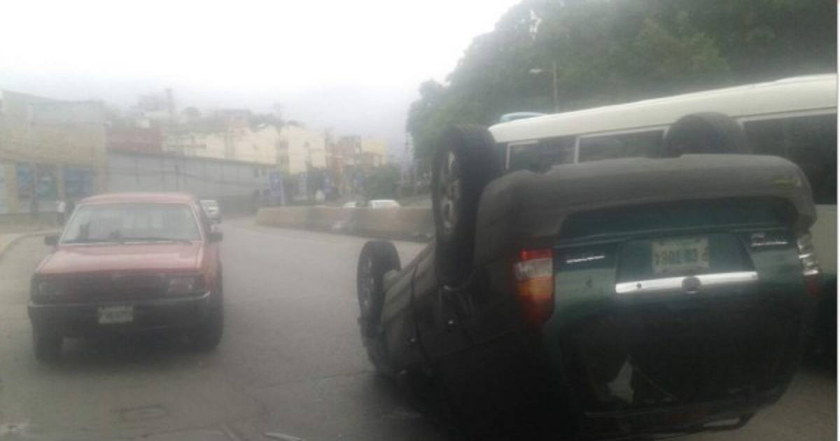 Mientras que el vehículo quedó con las llantas hacia arriba en plena vía, lo que provocó un fuerte congestionamiento en la zona.