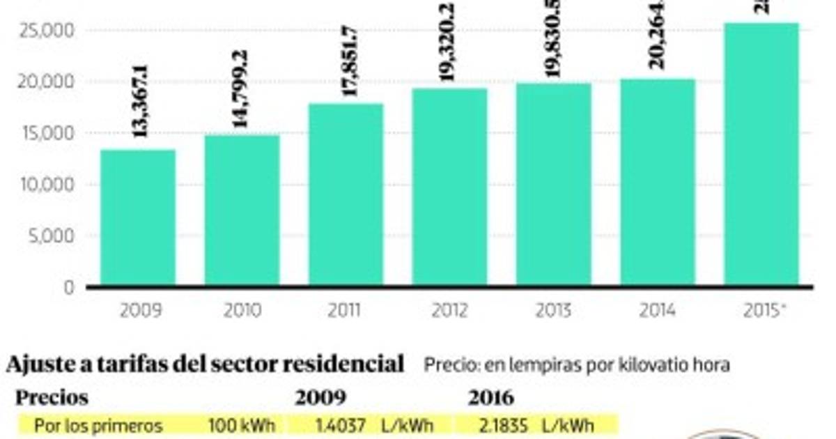 El costo del kilovatio de energía puede subir de 3.43 a 3.51 lempiras