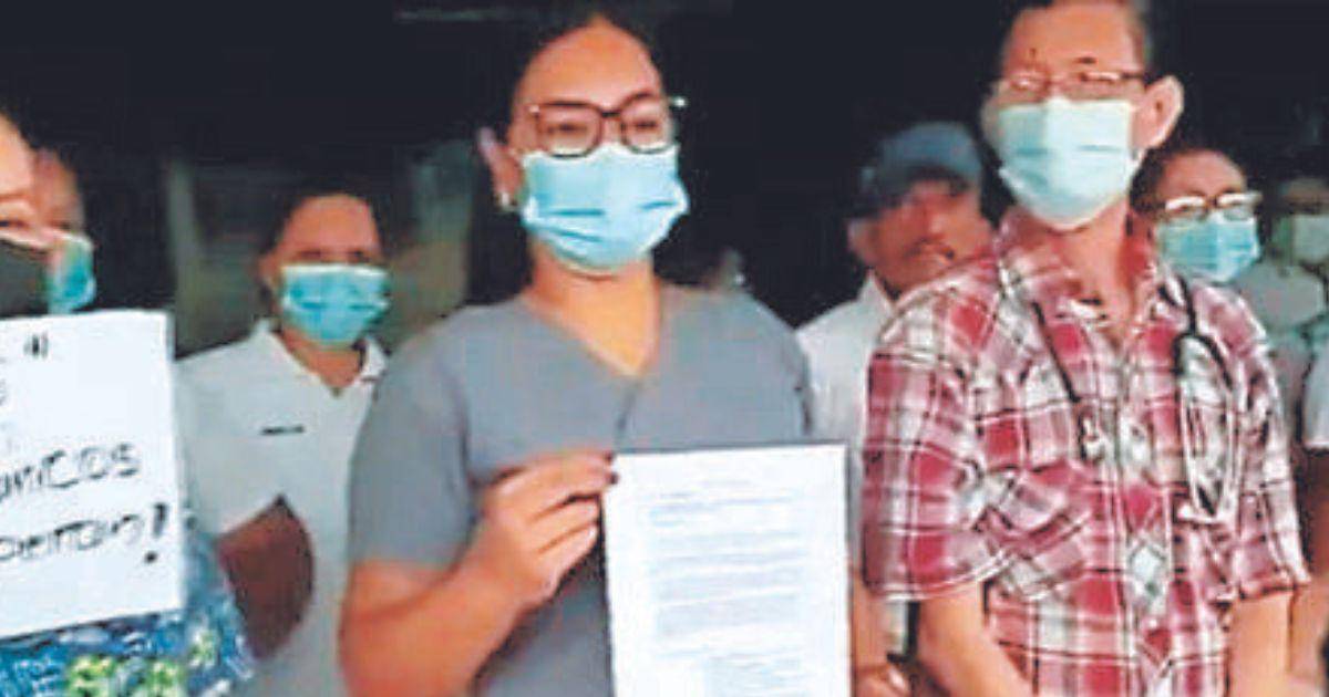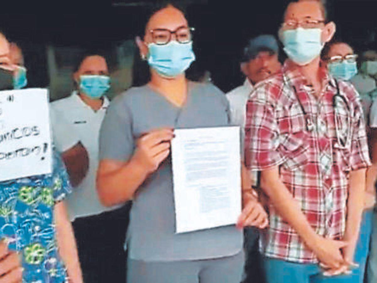 Son 50 doctores del IHSS de la sultana del sur que protestaron la mañana del jueves exigiendo el pago de sus sueldos porque ya se les adeuda 5 meses .