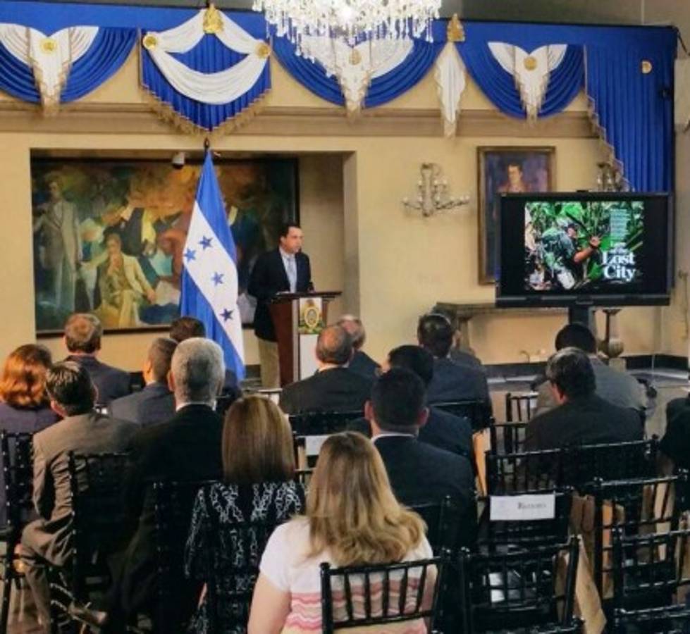 Ejecutivos de la revista internacional National Geographic presentaron este lunes al presidente Juan Orlando Hernandez la publicación sobre el hallazgo de la Ciudad Blanca.