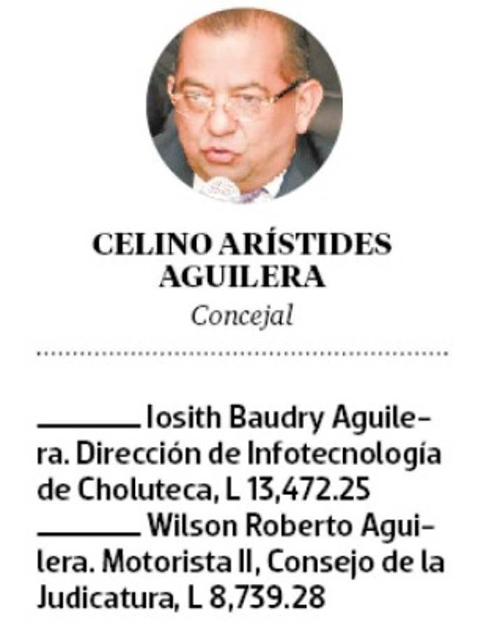 Por su parte, el concejal Celino Aguilera mantiene a un pariente suyo laborando en la Dirección de Infotecnología en Choluteca y a otro como motorista en el Consejo de la Judicatura.