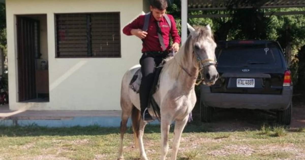 Según las informaciones, el estudiante del Instituto La Independencia reside en el Barrio Gualjoco y su caballo ha sido su fiel compañero y su forma de ahorro.