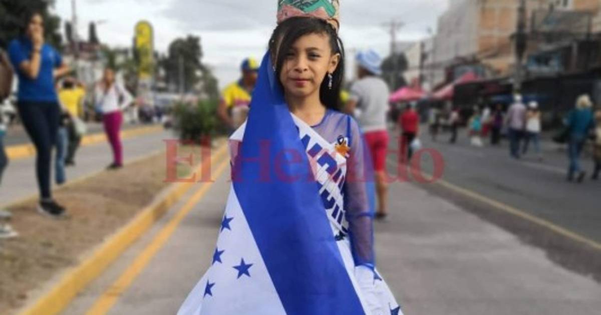 TEGUCIGALPA, HONDURAS.- Con un vestido que representa a la Bandera Nacional, la pequeña