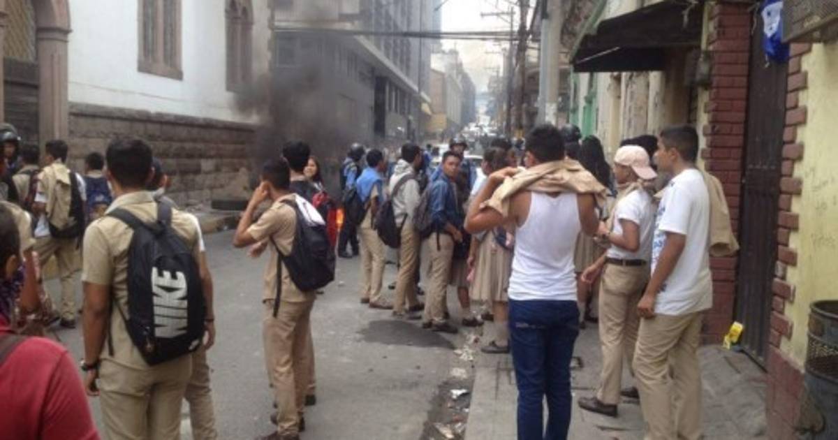 Los alumnos protestan por el bono estudiantil de 1,000 lempiras que ofreció pagar el gobierno tras el aumento al precio del pasaje de transporte público.