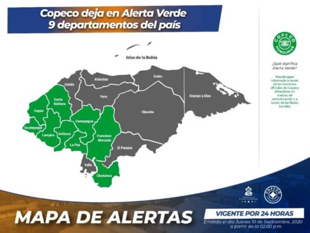 TEGUCIGALPA, HONDURAS.- Debido a las lluvias registradas en varias zonas de Honduras en los últimos días, la Comisión Permanente de Contingencias (Copeco) extendió la medida de alerta verde para nueve departamentos del país.
