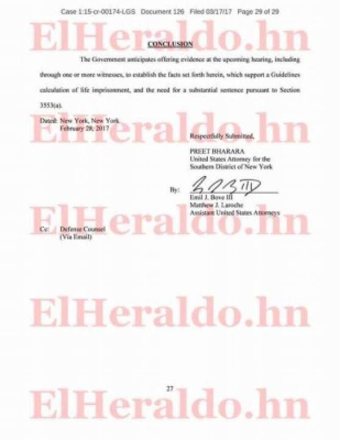 El documento en el acápite V indica que el acusado acordó facilitar la seguridad para una carga de toneladas de cocaína supuestamente destinada para el jefe del cartel de Sinaloa, Joaquín “El Chapo” Guzmán.