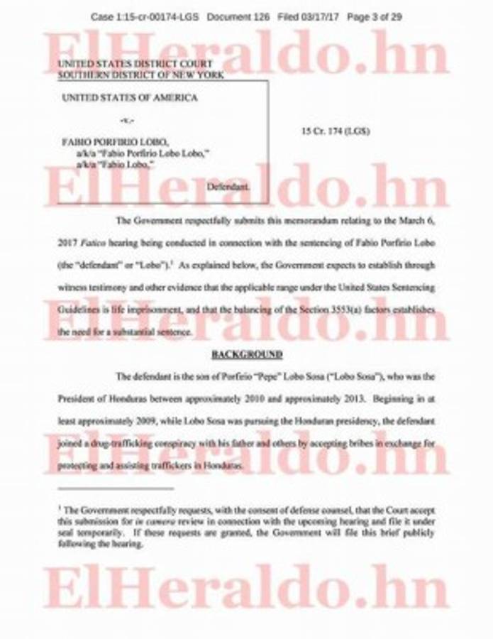Cuando se dio la cita entre Devis Leonel y Fabio Lobo para hablar de un exitoso negocio, en realidad todo era parte de un plan para su captura. EL HERALDO tuvo acceso a un documento de la Fiscalía de Nueva York presentado ante la justicia donde es sometido a juicio el hijo del expresidente capturado en Haití el 20 de mayo de 2015 y narra los vínculos de Lobo con el narcotráfico.