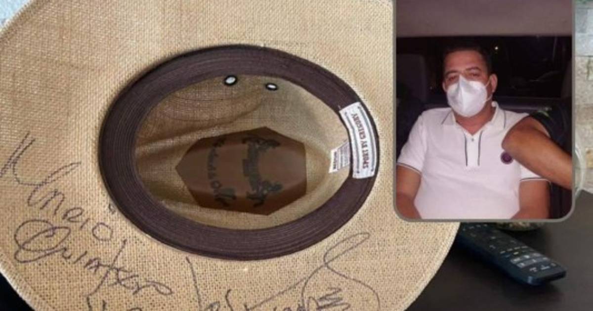 El sombrero es de la prestigiosa marca Gregory y estaba firmado por el vocalista mexicano, donde además se lee el nombre del famoso grupo.