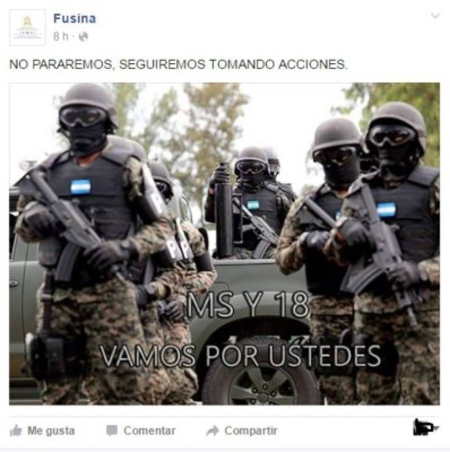 “Vamos Fusina, tú puedes. No decepciones a tu pueblo Honduras”; “Era tiempo que limpien Honduras de esa peste. Como han hecho daño al pueblo catracho”; 'Felicidades estamos con Ustedes. Un abrazo Hermanos” son algunos de los comentarios de apoyo de cientos de hondureños a la institución.