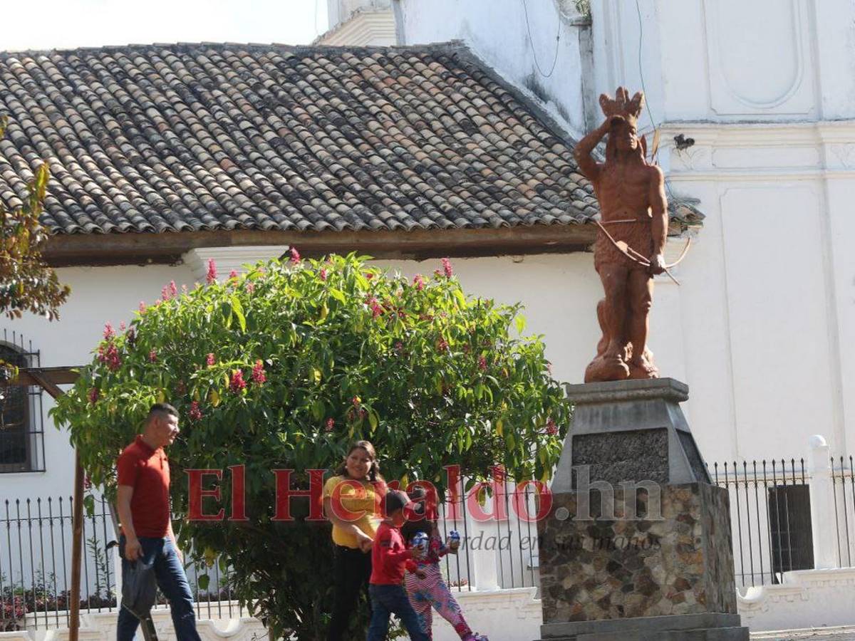 GRACIAS, HONDURAS.- En una mano sostiene el arco y la flecha, con la otra se cubre la vista para vigilar las montañas de la tierra que defendió como todo un guerrero hasta la muerte.