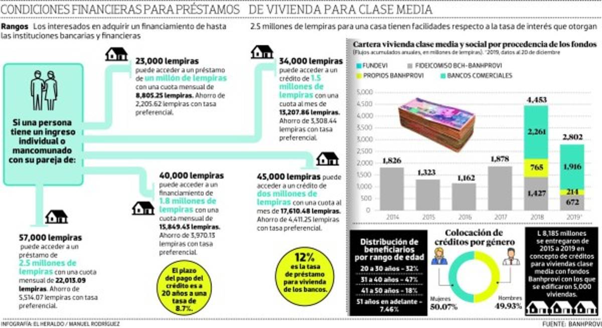 TEGUCIGALPA, HONDURAS.- De 2,205.62 hasta 5,514.07 lempiras es el ahorro mensual para personas de la clase media que deseen optar a una casa a través del programa de asistencia a la tasa preferencial que pone a disposición el Banco Hondureño para la Producción y la Vivienda (Banhprovi).