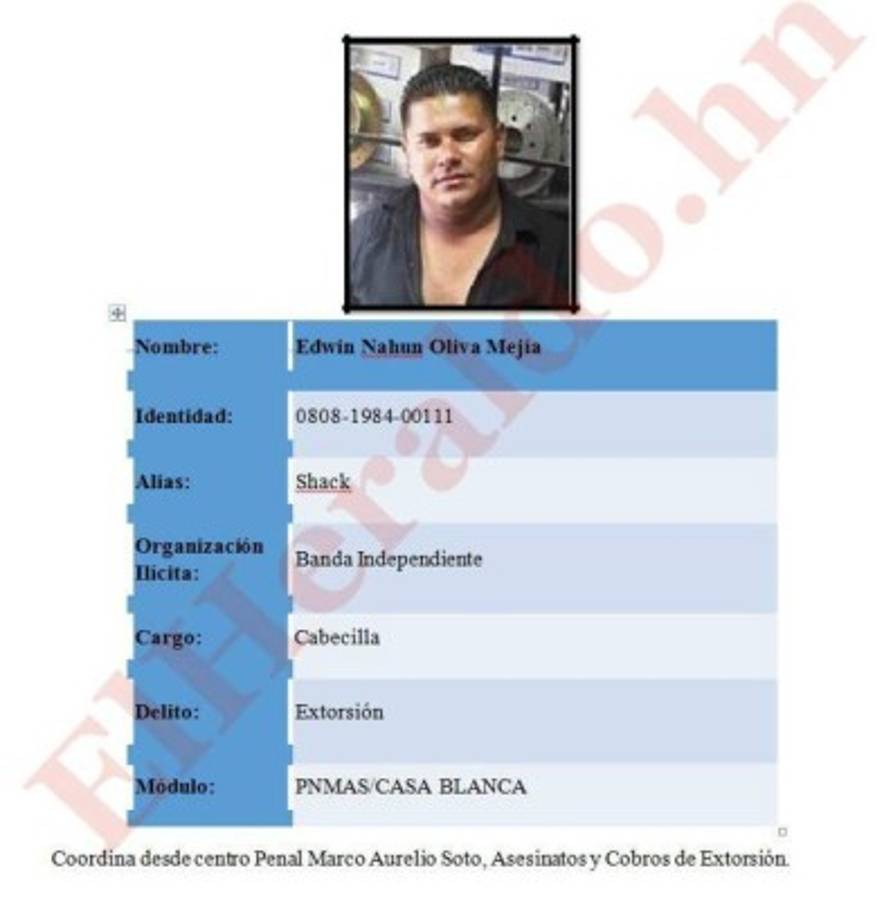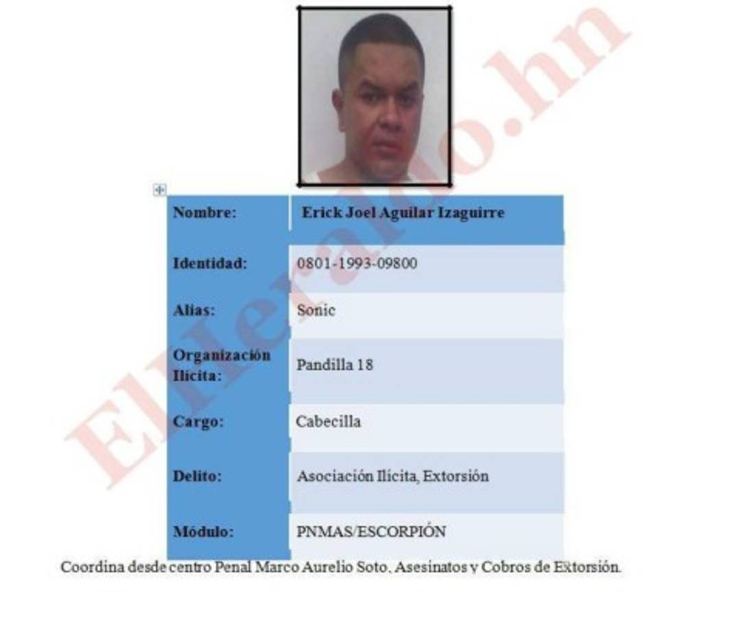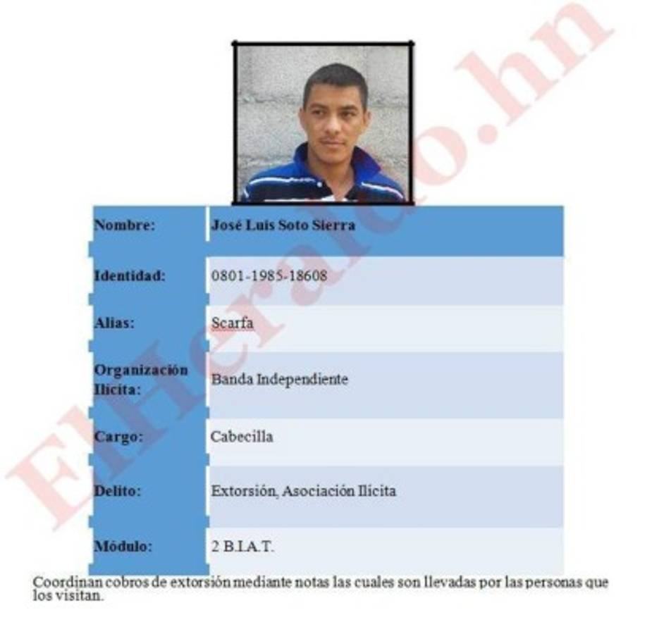 Los trasladados fueron identificados como José Luis Soto Sierra (Scarfa); Erick Joel Aguilar Izaguirre (Sonic); Héctor Mauricio Reyes Sánchez (Cholo); Darwin Agustín Pavón Martínez (Darwin); Edwin Nahun Oliva Mejía (Shack).