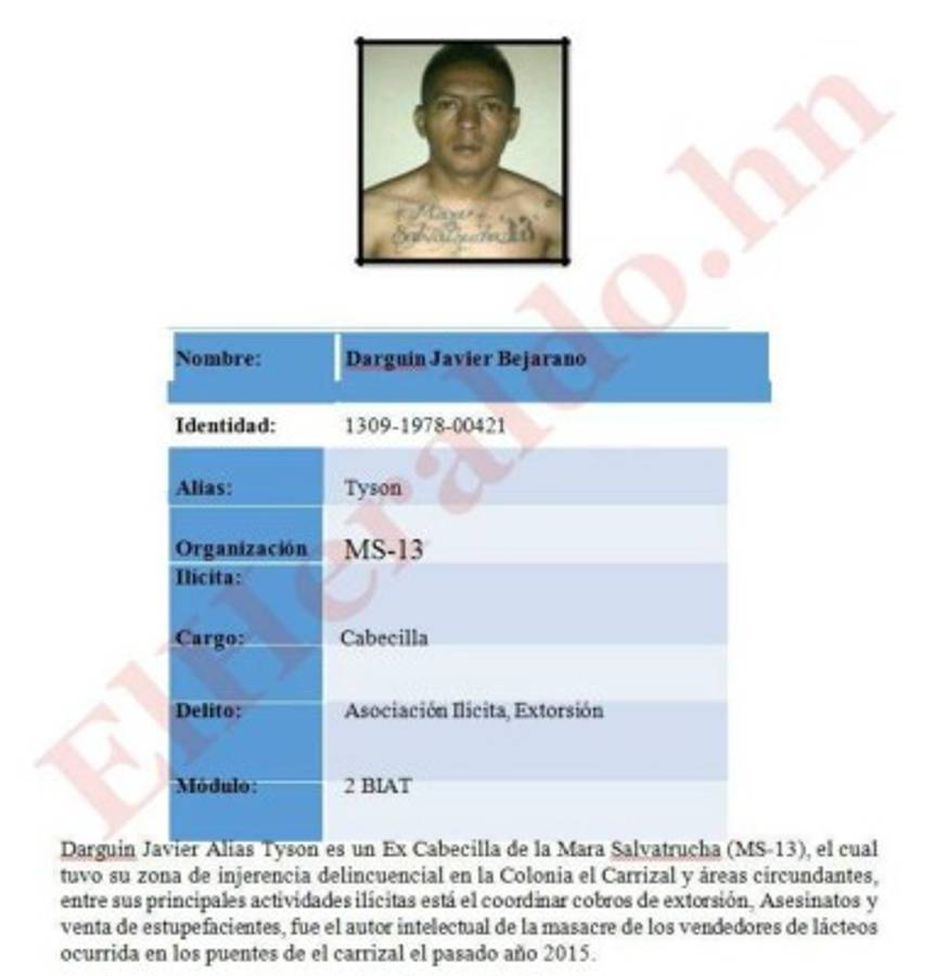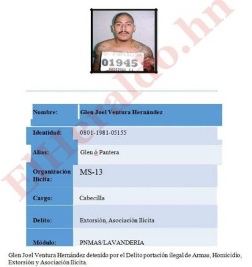 También Darguin Javier Bejarano (Tyson); Glen Joel Ventura Hernández (Glen ó Pantera); y Walter Alexander Amador Perdomo (Demente).