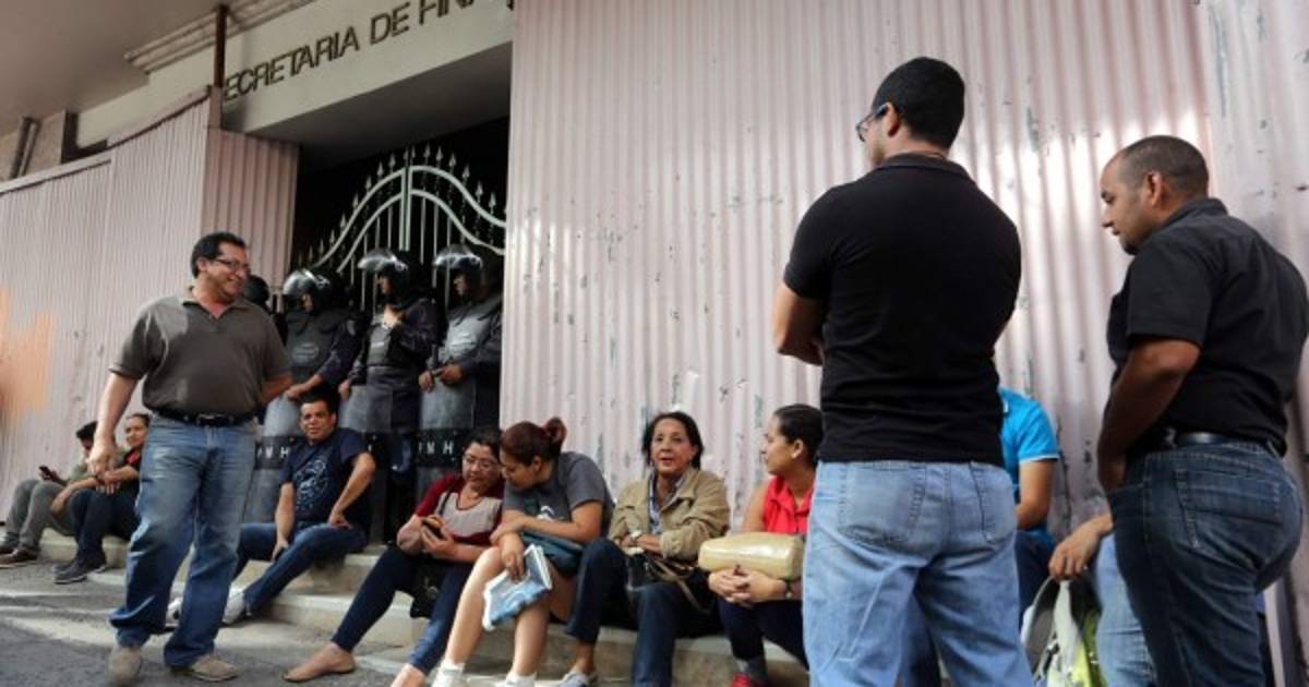 Un grupo de maestros molestos por la falta de pago de sus salarios protestan a las afueras de la Secretaría de Finanzas (SEFIN), exigiendo a las autoridades del gobierno el cumplimiento de la totalidad de la planilla del sistema de educación pública.