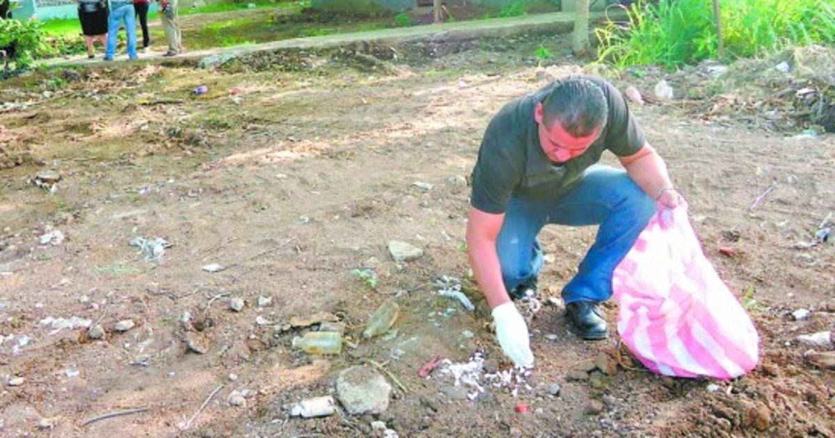 A eso de las 4:15 de la tarde, el fiscal Vernon Barahona, conjuntamente con un equipo de la DNIC, inspeccionaron el sitio ubicado bajo un árbol de ceiba, donde se encuentra enterrada la materia prima que le cuesta muchos millones de lempiras al Estado.