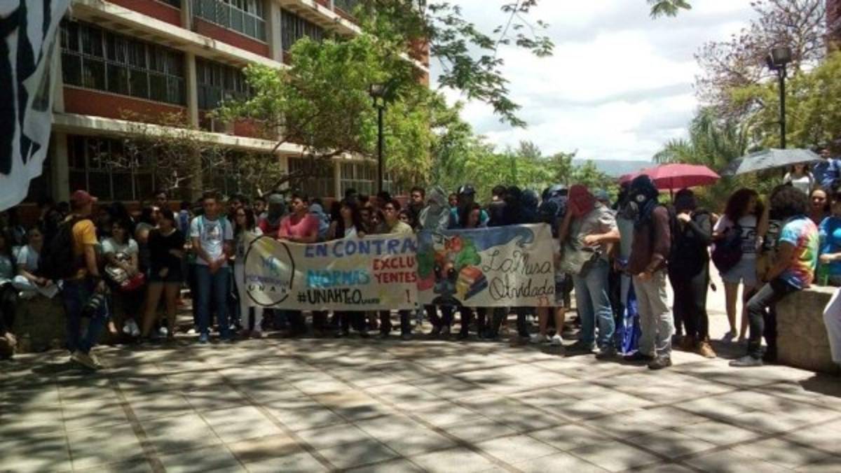 En Tegucigalpa ingresaban de manera normal los estudiantes, sin embargo a partir de las 9:30 am iniciaron actividades con un 'mega plantón' en la Facultad de Derecho.