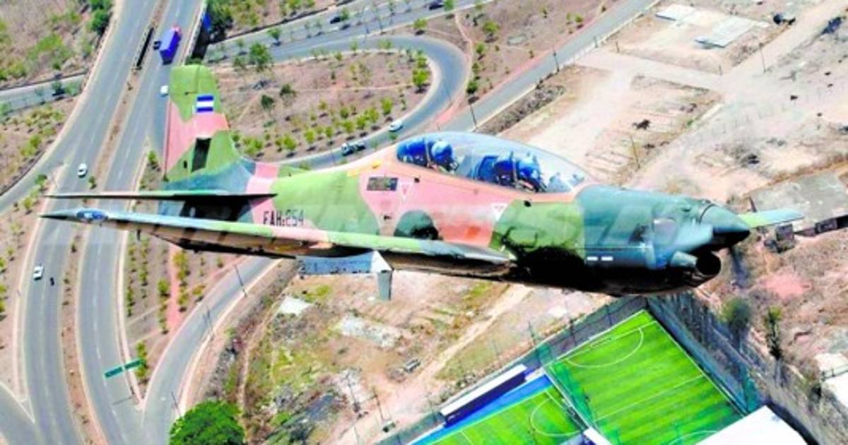 Tucano de la Fuerza Aérea Hondureña (FAH) sobrevuela el anillo periférico de Tegucigalpa. La foto es colección, propiedad y cortesía del teniente de la FAH, Óscar Josué Elvir Vásquez.