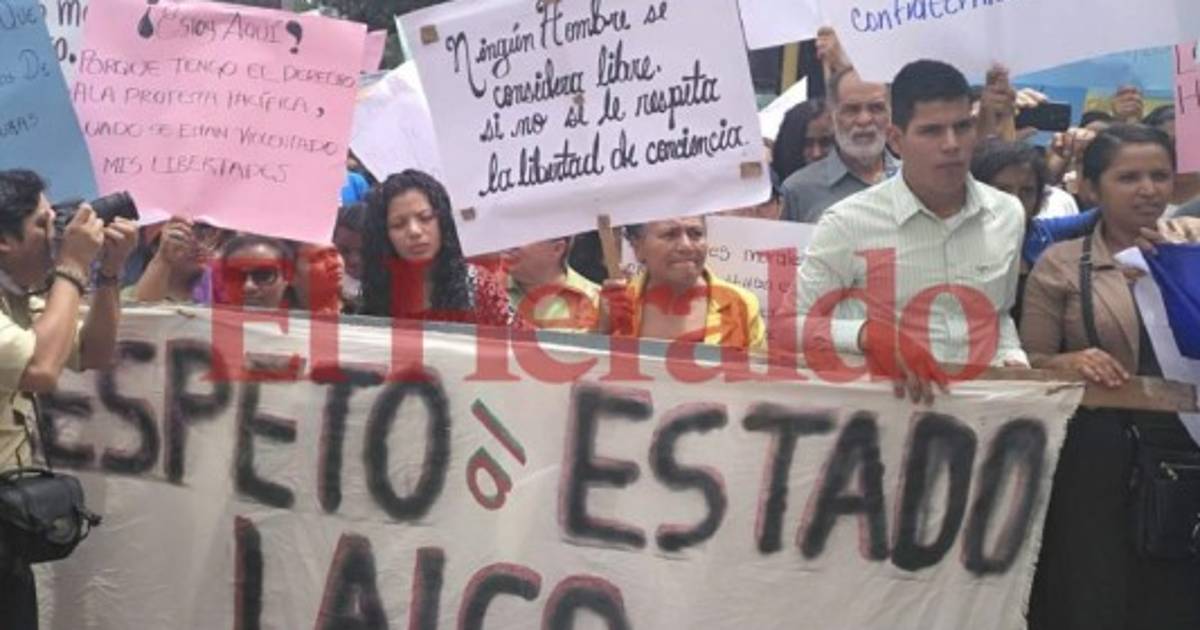 Carlos Rivera, uno de los hondureños en la protesta afirmó que 'tenemos una fe, un credo, tenemos también derechos y eso lo contempla la Constitución de la República y ese mensaje es laico'.