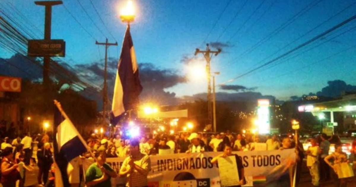 La marcha inició a las 5:00 de la tarde de ayer, desde la Iglesia La Guadalupe, pasaron frente a la Comisión Nacional de Banca y Seguros (CNBS), donde se opusieron a la liquidación de Banco Continental.