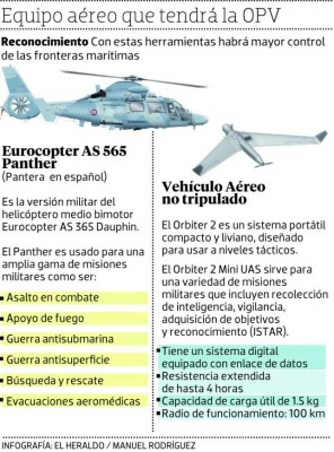 Aviones no tripulados y un helicóptero serán incorporados a la Nave de Patrulla Costera (OPV) que Honduras compra a Israel.