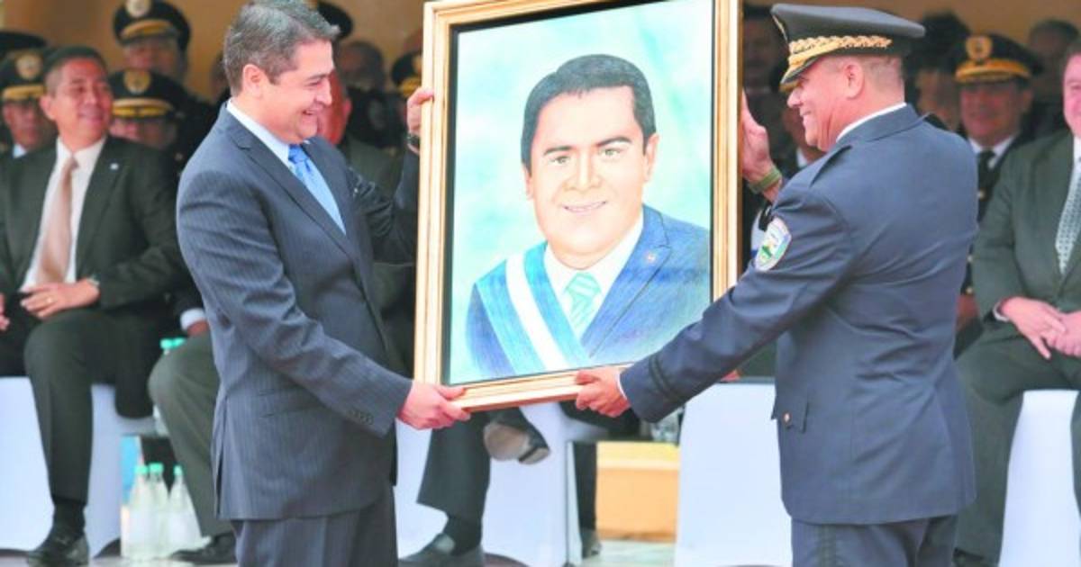 El presidente de Honduras Juan Orlando Hernández durante el ascenso de un oficial. 6 Ascensos en la Policía Nacional de Honduras