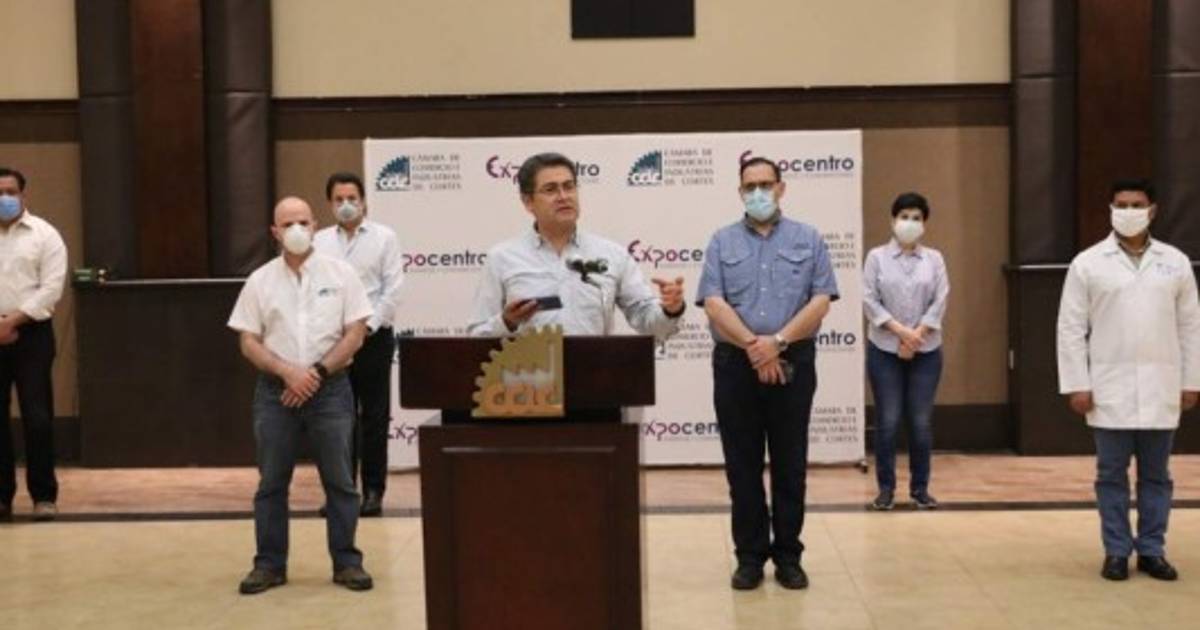Hernández abordó el tema en conferencia de prensa tras supervisar el centro de aislamiento temporal que funcionará para 402 pacientes con Covid-19 en las instalaciones de Expocentro, de la Cámara de Comercio e Industrias de Cortés (CCIC), en San Pedro Sula.