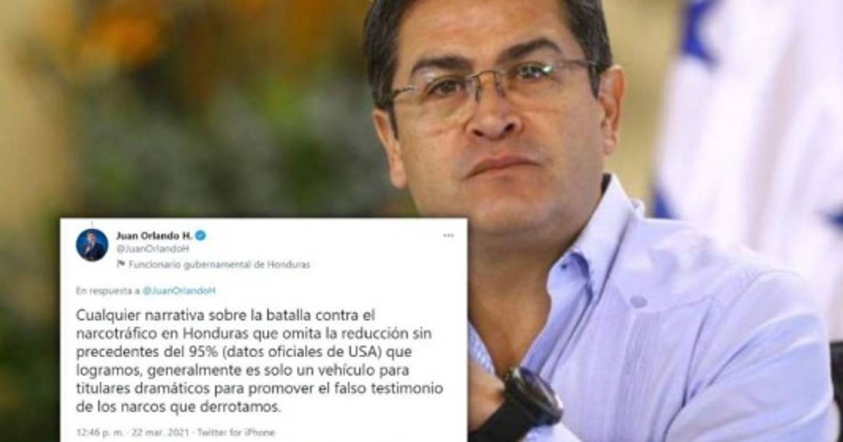 'Cualquier narrativa sobre la batalla contra el narcotráfico en Honduras que omita la reducción sin precedentes del 95% (datos oficiales de USA) que logramos, generalmente es solo un vehículo para titulares dramáticos para promover el falso testimonio de los narcos que derrotamos', expresó el mandatario en Twitter.