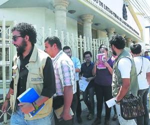 Los abogados defensores de Solórzano, Celeste Cerrato y Jair López, llegaron la mañana de este viernes al Tribunal de Sentencia del Poder Judicial a notificarse de la resolución.