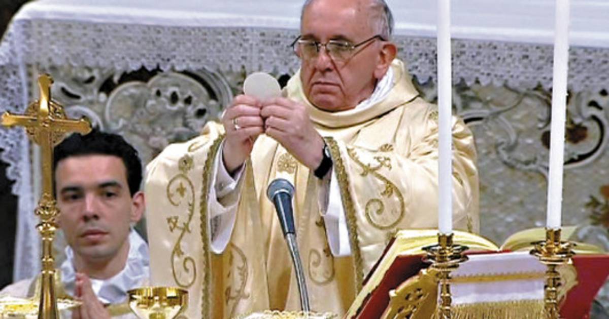 Durante la misa concelebrada, el nuevo Papa recibe de parte de los cardenales dos símbolos muy importantes: el palio “petrino”, que es un ornamento que tiene la forma de una faja circular que se deja sobre los hombros y de la cual penden ante el pecho y en la espalda dos tiras rectangulares, todo de lana blanca, destacándose de ella seis cruces bordadas.