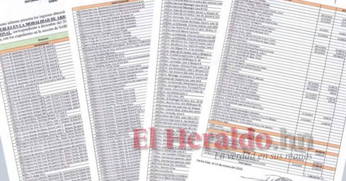 El informe evidencia que algunas propiedades son alquiladas entre 500 y 600 lempiras mensuales. En lista figuran dos edificios, uno situado en El Paraíso y el otro en Tocoa, Colón, que a pesar de estar alquilados no han percibido ingresos desde hace varios meses.