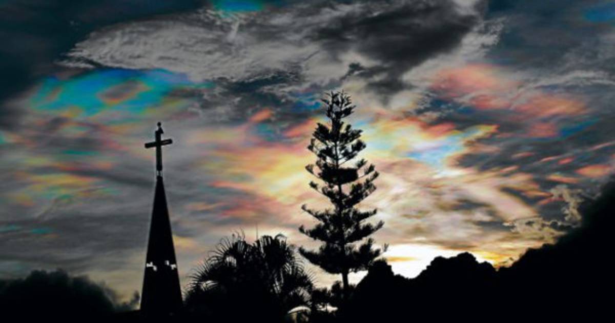 El experto detalló que a esa elevación la nube madre deja de crecer, aplanándose en forma de yunque en la parte superior, tanto por la temperatura baja y los fuertes vientos provenientes del sur, las que arrastran los cirrus y cuando la luz del sol los penetra se comportan como pequeños prismas que le cambian el rumbo al rayo solar, causando de esta manera una mezcla decolores.