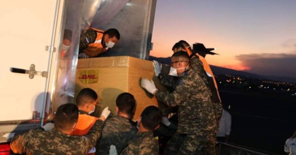 La carga fue traída por un avión de la Fuerza Aérea Hondureña y llegó a la Base Aérea Hernán Acosta Mejía, de donde se redistribuirá en otros aviones hondureños a otros cinco países que conforman el SICA.