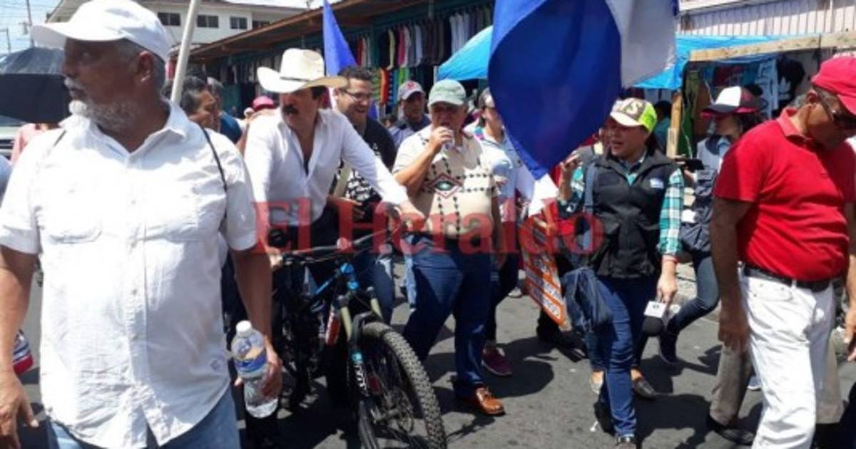 Rodeado por decenas de personas el exmandatario se condujo por la primera calle de Comayagüela saludando con una mano y haciendo maniobras con la otra para no caerse al pavimento.