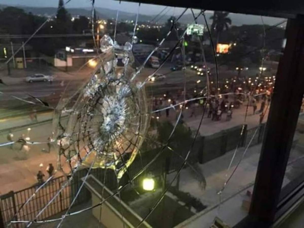 Pese a que las marchas se han caracterizado por ser pasivas, en esta ocasión algunos de sus participantes lanzaron piedras al edificio de Torre Libertad, donde funciona Ten canal 10, quebrando algunos vidrios y ocasionando daños al inmueble.