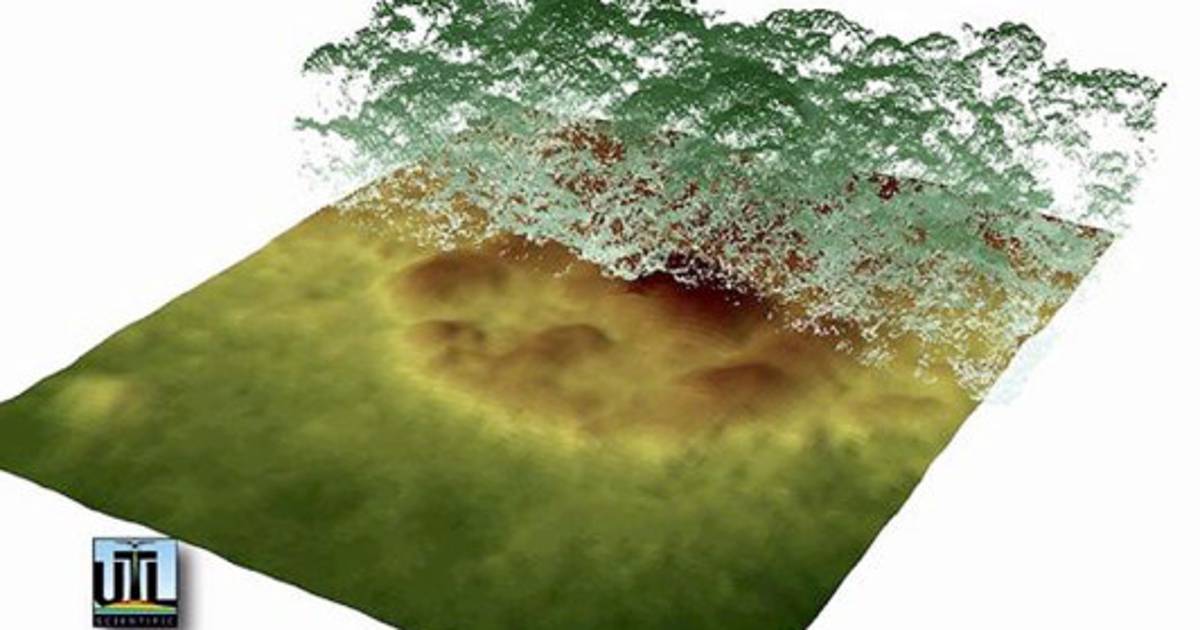 Esencialmente, los aviones de vuelo lento envían pulsos de láser constantes hasta tierra. A medida que pasan a través de la selva tropical, se develan las imágenes de la topografía debajo del dosel del bosque espeso.