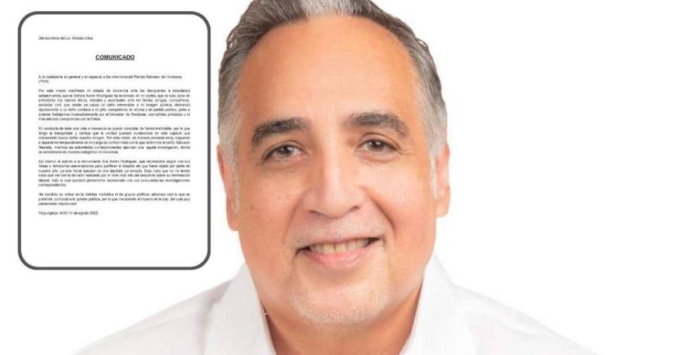 TEGUCIGALPA, HONDURAS.- Moisés Ulloa, delegado en materia anticorrupción de Salvador Nasralla rechazó las denuncias por acoso sexual y laboral realizadas por Karen Rodríguez, la exdirectora del despacho del designado presidencial, a través de un video difundido en sus redes sociales.