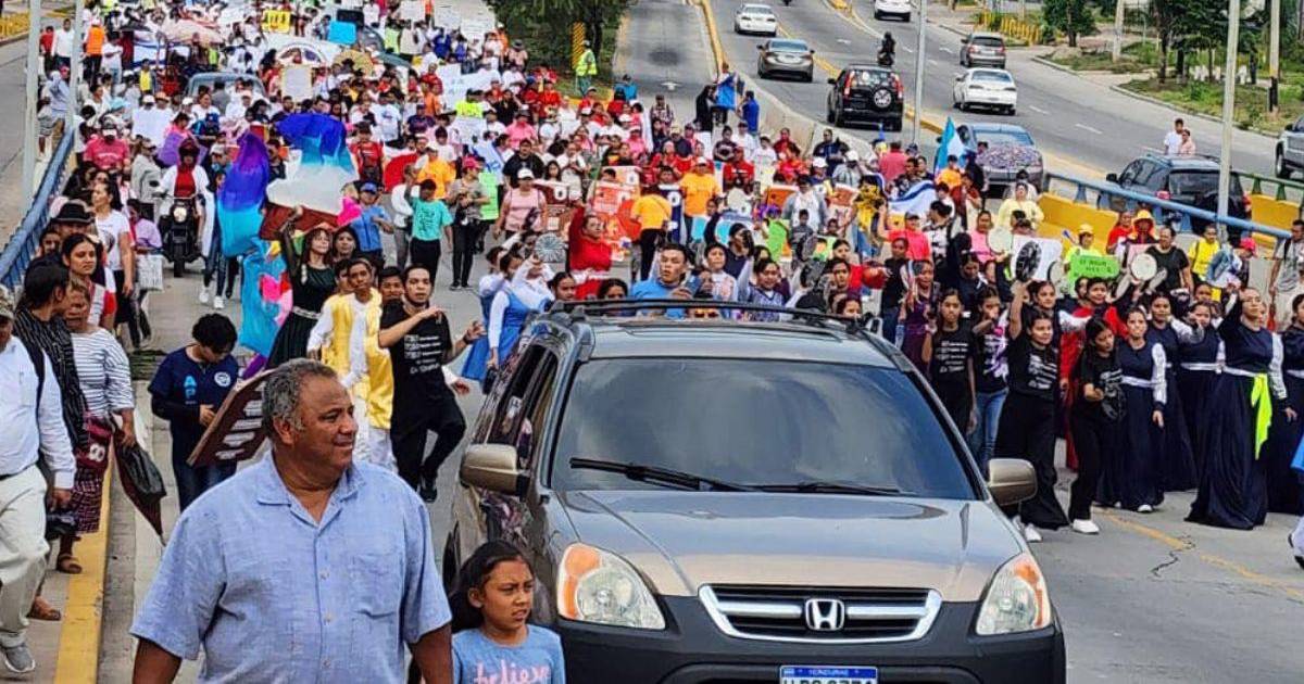 Con alabanzas, oraciones, pancartas y bailes, los manifestantes recorrieron la ciudad de manera pacífica, mientras exigían que no se aprueben proyectos como la despenalización del aborto, el matrimonio igualitario y otros que forman parte de la agenda del gobierno de la presidenta Xiomara Castro, según reconoció en su plan de campaña.