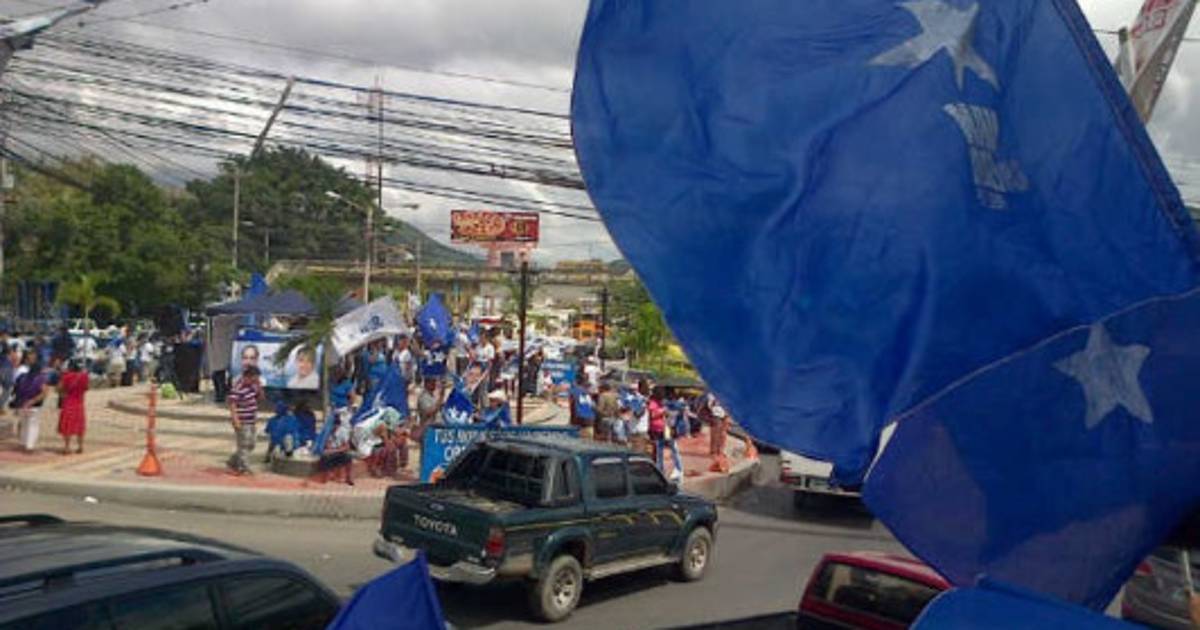Alrededor de las 10:00 AM, el carril que conduce al centro de Tegucigalpa fue colmado por vehículos con banderas azul y blanco y una muchedumbre de seguidores del candidato presidencial Juan Orlando Hernández.
