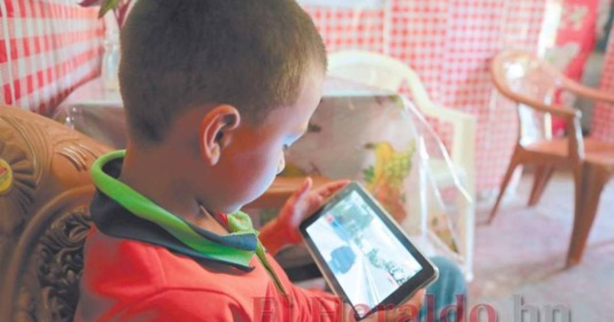 TEGUCIGALPA, HONDURAS.- En el corredor de su casa el pequeño Daniel se sienta en una silla, sujeta bien la tablet que tiene el sello de la Secretaría de Educación y se pierde por horas jugando carros.