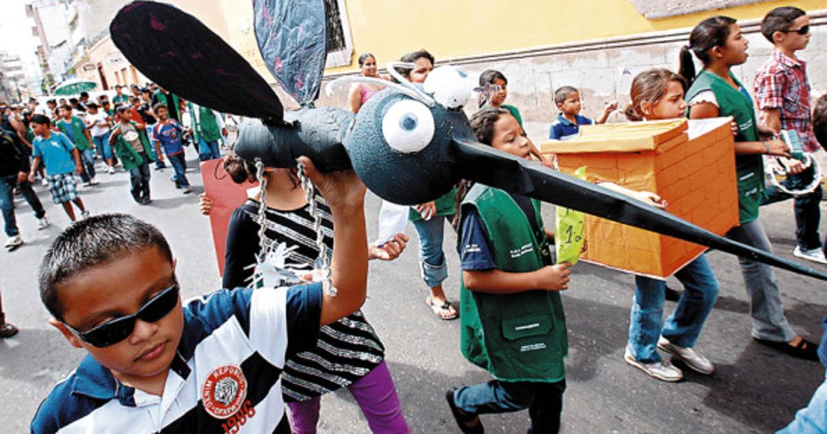 Los pequeños escolares asistieron a la marcha en compañía de sus padres, maestros de los centros educativos y al unísono solicitaron un espacio limpio libre del zancudo Aedes aegypti, transmisor del dengue.