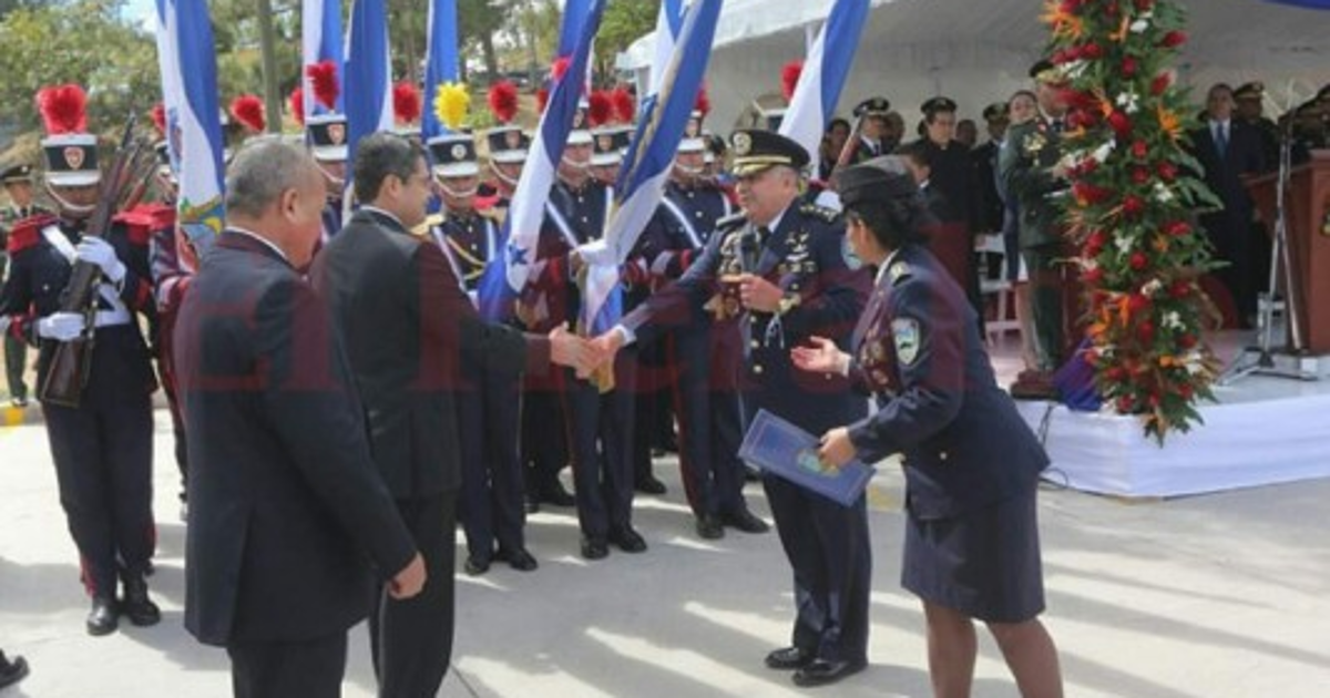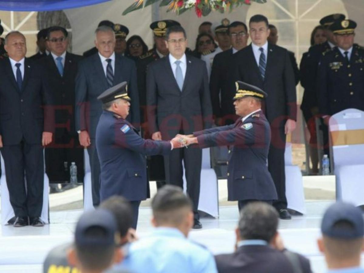 En el acto Villanueva le entregó el bastón de mando al nuevo director de los uniformados, quien asume a partir de este momento las riendas de la PN, tras ser juramentado por el mandatario hondureño.