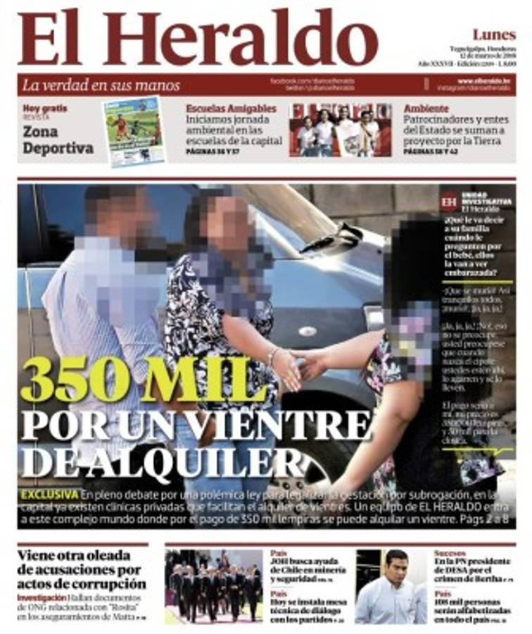 La Unidad Investigativa de EL HERALDO divulgó una serie de publicaciones en las que se constataba que existen clínicas privadas que facilitan el alquiler de vientres por el pago de 350 mil lempiras, constituyéndose en un negocio lucrativo.